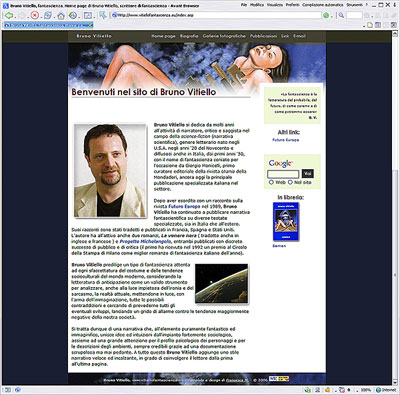 Schermata del 2006 con grafica tratta dalla copertina del romanzo Progetto Michelangelo (Perseo Libri):
